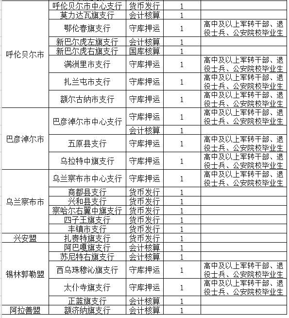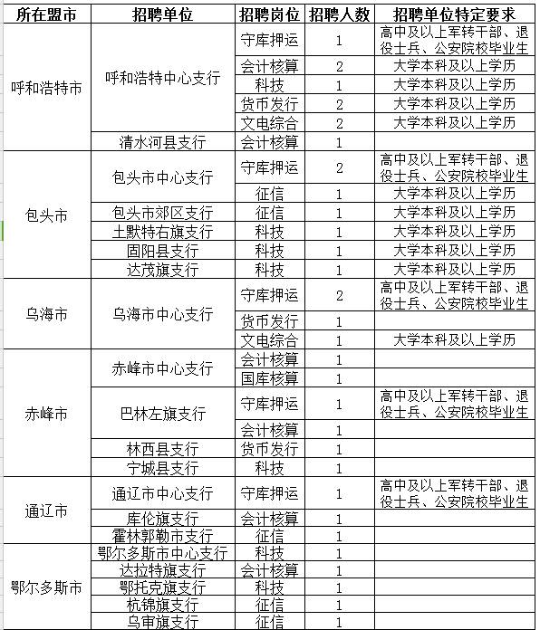 6、招聘單位另有特殊要求的,詳見《內(nèi)蒙古自治區(qū)人民銀行系統(tǒng)2017年業(yè)務操作崗位聘用制員工招聘簡章》中“招聘單位特定要求”;