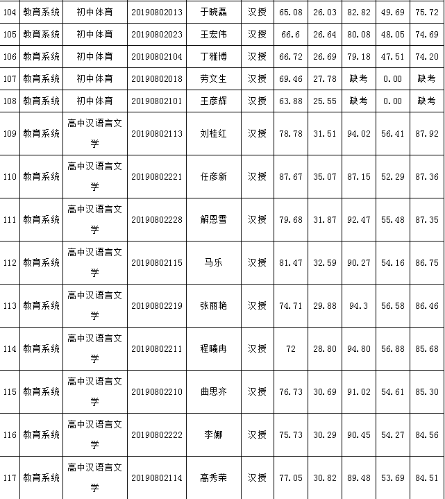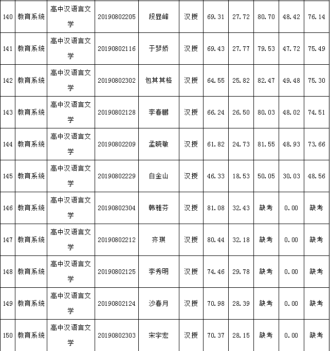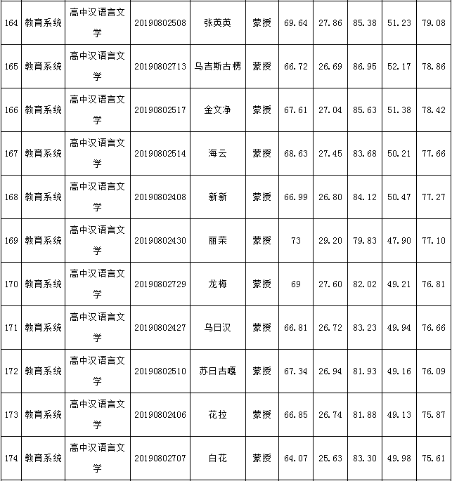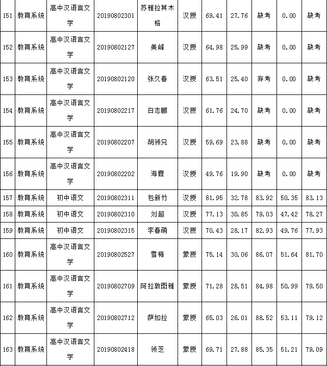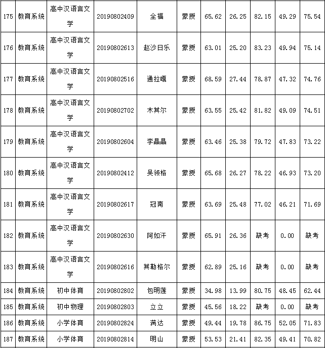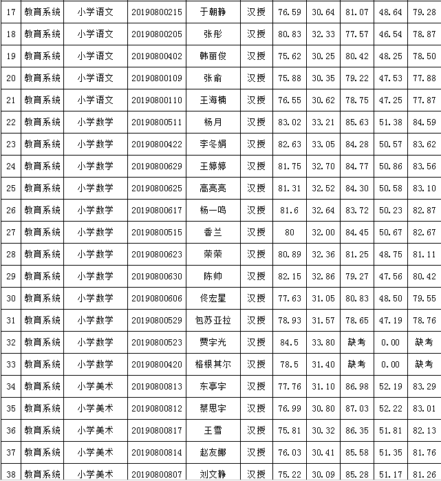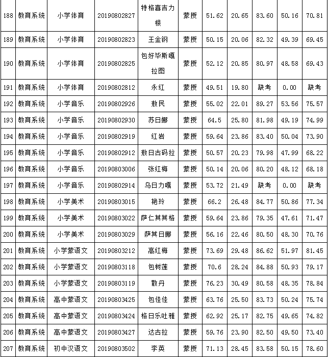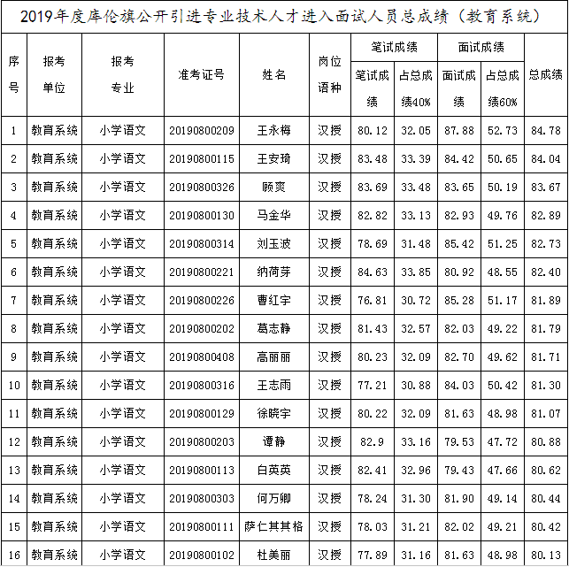 2019年庫倫旗公開引進專業(yè)技術人才進入面試人員總成績公告如下: