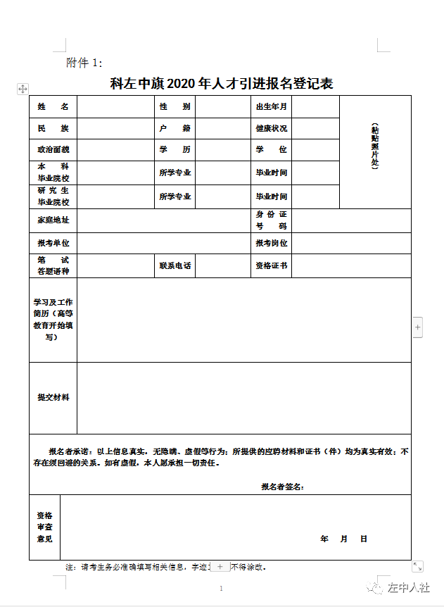 附件:1.科左中旗2020年人才引進(jìn)報名登記表