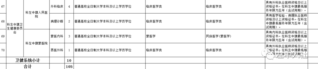 本次計劃引進(jìn)人才105人,其中:部分旗直部門所屬事業(yè)單位55人,高中教師40人,旗衛(wèi)健系統(tǒng)10人。具體明細(xì)見崗位表。