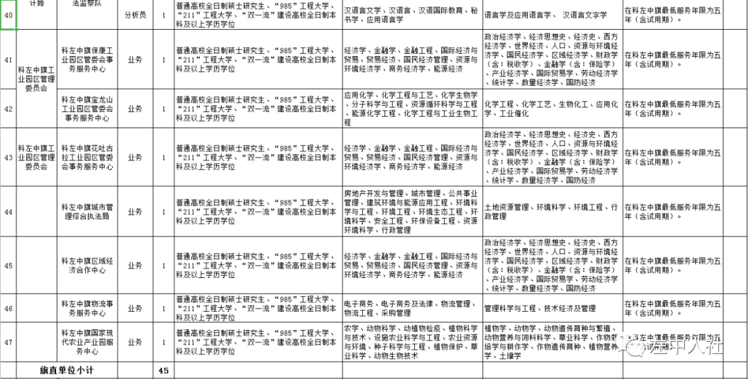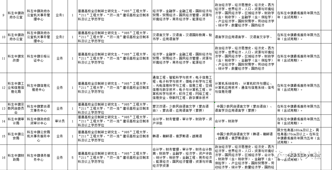 (2)科左中旗建筑工程質(zhì)量監(jiān)督站因引才所需專業(yè)特殊,學(xué)歷放寬至全區(qū)“內(nèi)蒙古”大學(xué)冠名的普通高校全日制本科及以上學(xué)歷學(xué)位畢業(yè)生。