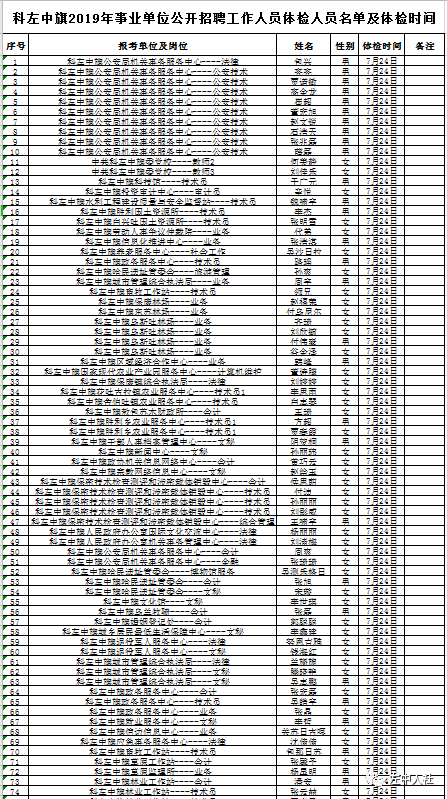 附件1:科左中旗2019年事業(yè)單位公開招聘工作人員體檢人員名單及體檢時間