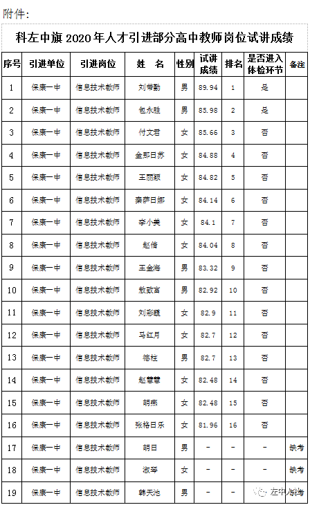 一、科左中旗2020年人才引進部分高中教師崗位試講成績(見附件)