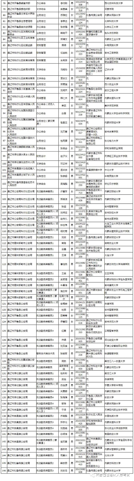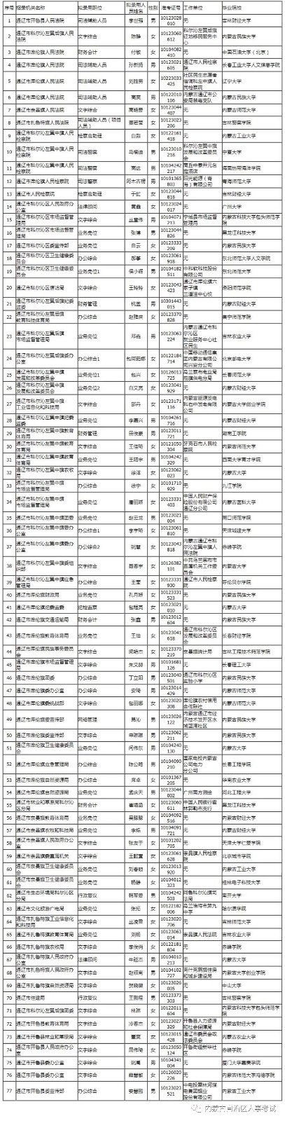 補錄-通遼市擬錄用人員