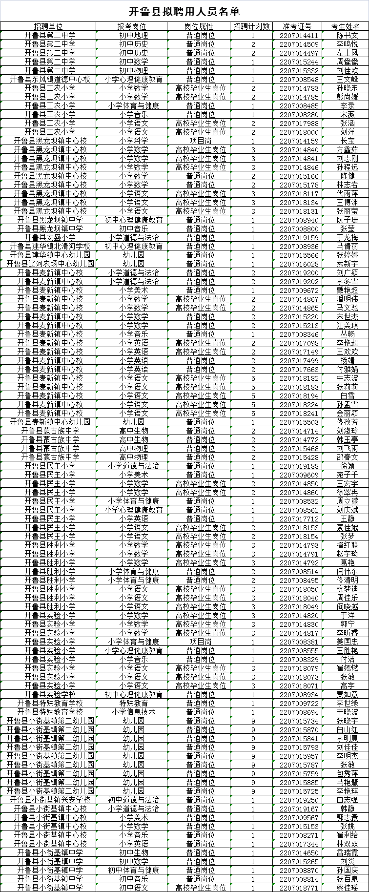 開(kāi)魯縣擬聘用教師政審表