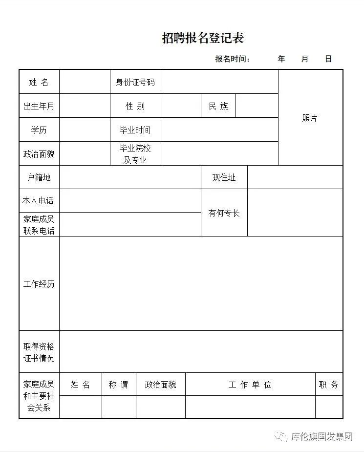 ①招聘報(bào)名登記表(見附件);