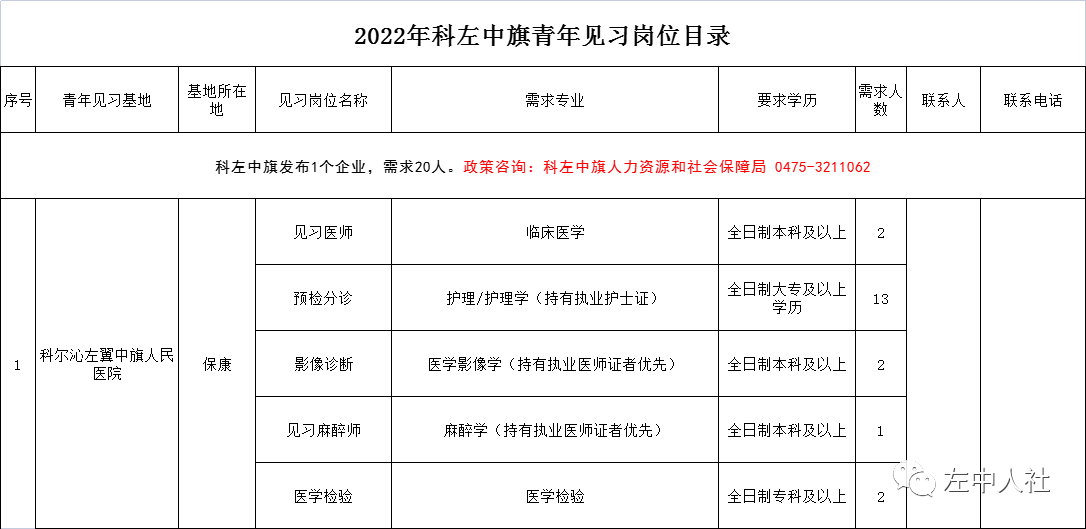 附件1:2022年科左中旗青年見(jiàn)習(xí)崗位目錄(第一批)