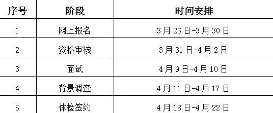 本次招聘流程包括報名、資格審核、面試、背景調(diào)查、體檢簽約等環(huán)節(jié)。