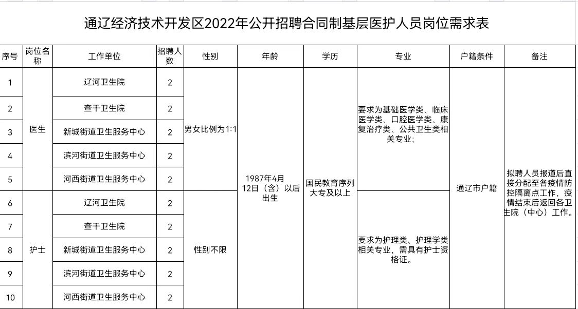 附件1 通遼經(jīng)濟技術(shù)開發(fā)區(qū)2022年公開招聘合同制基層醫(yī)護人員崗位需求表