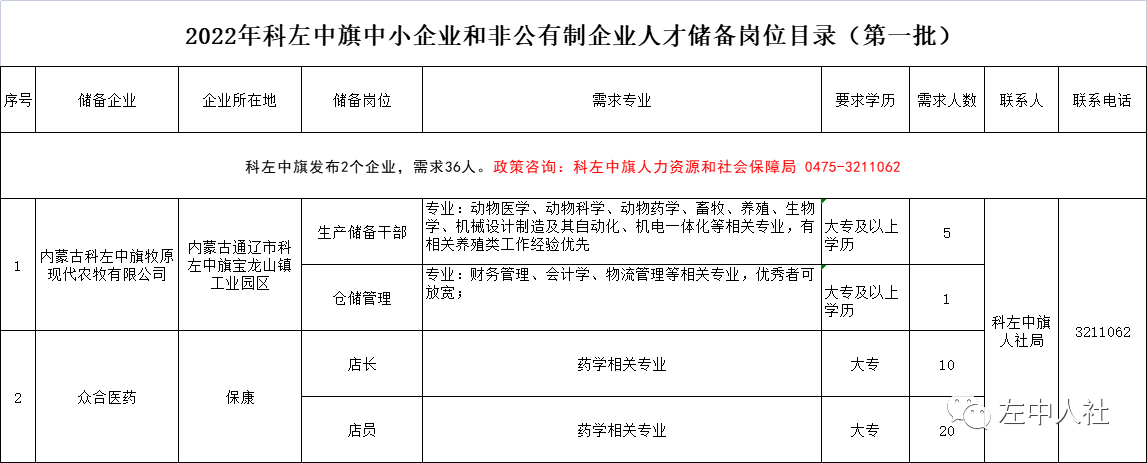 附件1:2022年科左中旗中小企業(yè)和非公有制企業(yè)人才儲備崗位目錄(第一批)