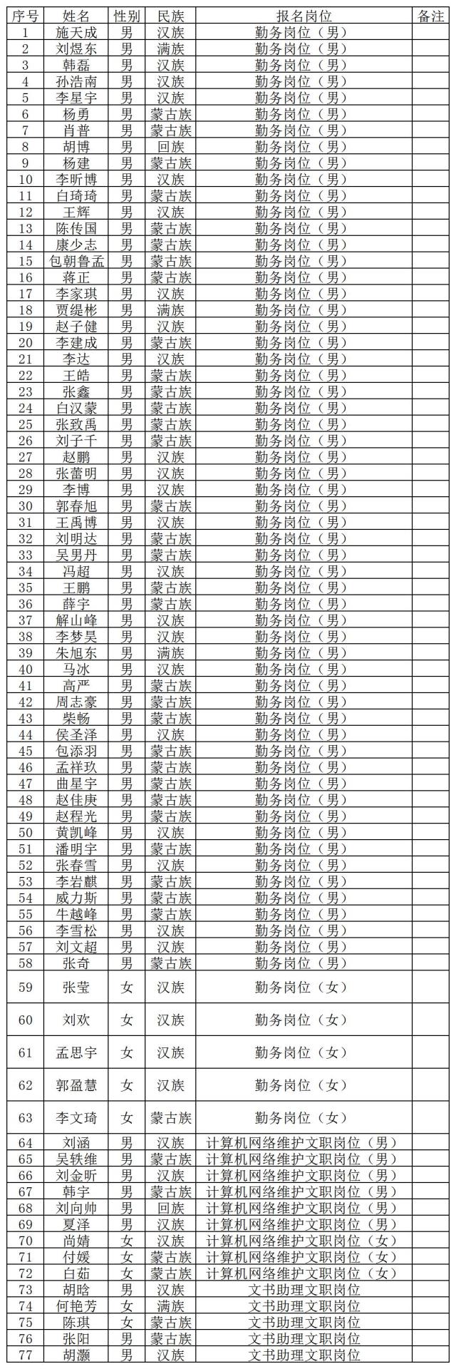 通遼市公安局科爾沁分局公開招聘警務(wù)輔助人員擬聘用人員花名冊