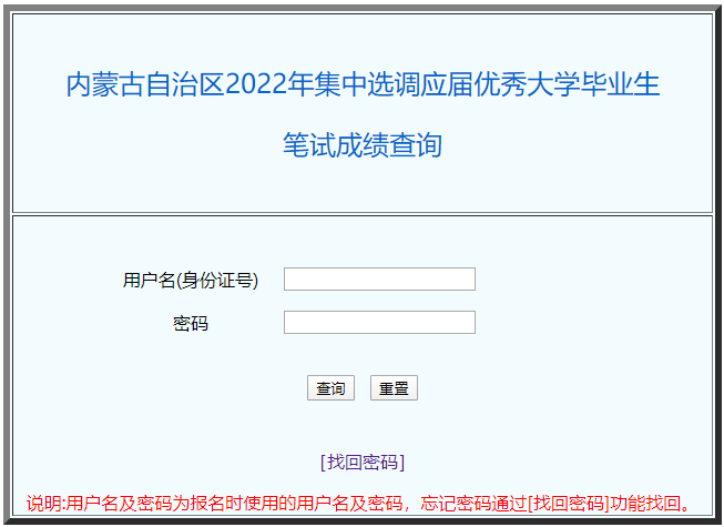 關(guān)于內(nèi)蒙古自治區(qū)2022年集中選調(diào)應(yīng)屆優(yōu)秀大學(xué)畢業(yè)生筆試成績(jī)查詢等有關(guān)事宜的公告