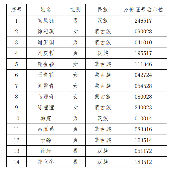 根據(jù)《內(nèi)蒙古自治區(qū)農(nóng)村信用社聯(lián)合社關(guān)于從嚴規(guī)范做好2021-2022年轄內(nèi)法人機構(gòu)應(yīng)屆高校畢業(yè)生校園招聘工作的通知》、《科左中旗農(nóng)村信用合作聯(lián)社2021-2022年校園招聘工作實施方案》規(guī)定,科左中旗農(nóng)村信用合作聯(lián)社擬錄用14名新員工,現(xiàn)將擬錄用人員名單進行公示,公示期5個工作日。公示期內(nèi)如有異議,請撥打電話0475-3216417、0475-3215700。公示時間:自2022年8月13日至2022年8月19日止。