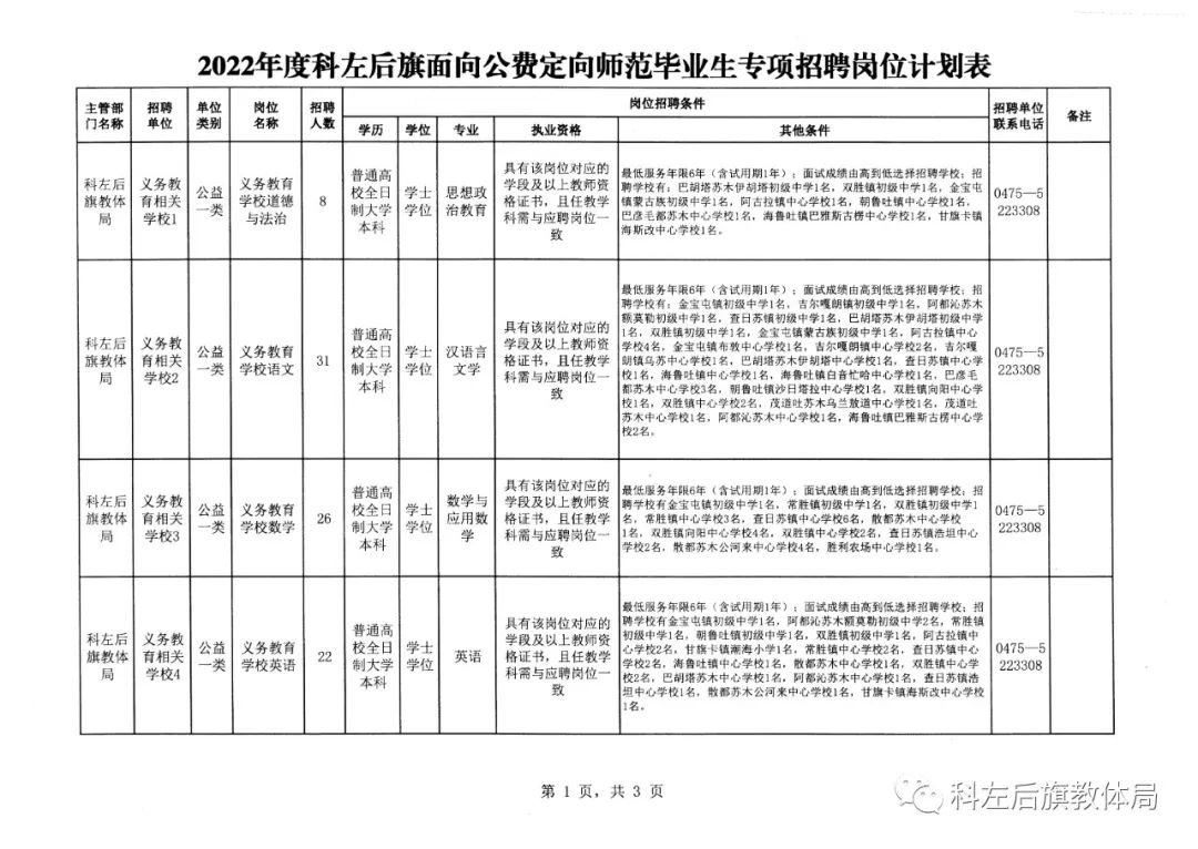 為做好2022年公開招聘工作,按照《2022年度科左后旗面向公費(fèi)定向師范畢業(yè)生專項(xiàng)招聘工作實(shí)施方案》和用人單位實(shí)際需要,制定本公告。