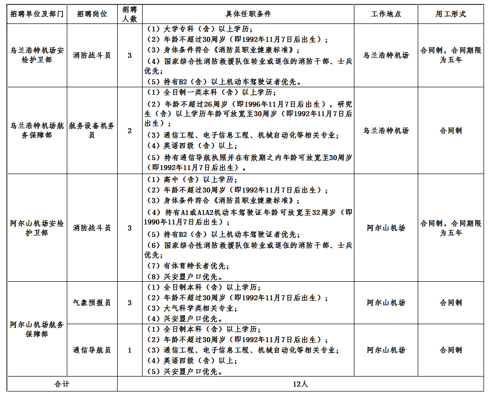 8.具有較強的團隊合作精神和敬業(yè)精神,服從烏蘭浩特機場或阿爾山機場工作安排。