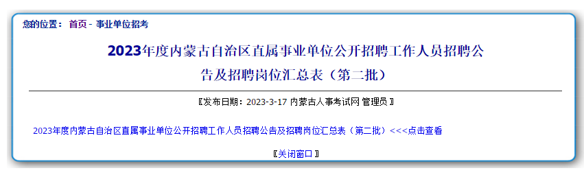 時間:2023/3/20 8:47:55 來源 :內(nèi)蒙古人事考試網(wǎng) 欄目 :招考信息 瀏覽次數(shù):