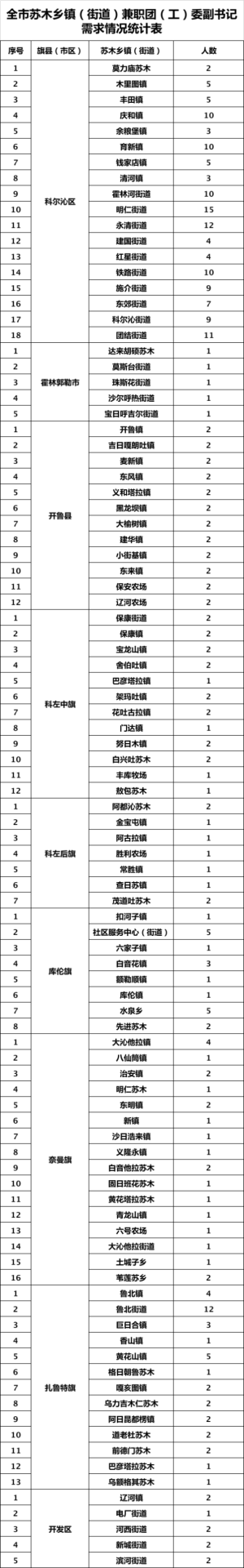(一)符合報名條件的人員可查看下方《全市蘇木鄉(xiāng)鎮(zhèn)(街道)兼職團(工)委副書記需求情況統(tǒng)計表》相關崗位內容。