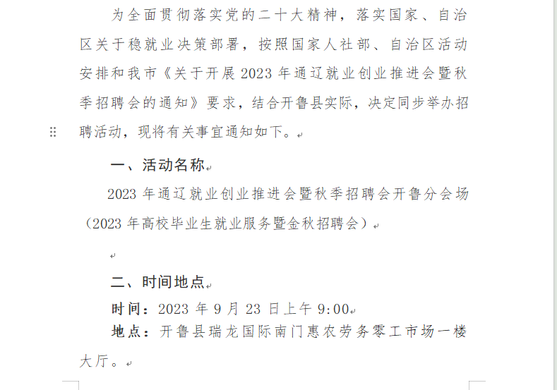 時間:2023/9/23 10:33:59 來源 :開魯縣人力資源和社會保障局 欄目 :招考信息 瀏覽次數(shù):