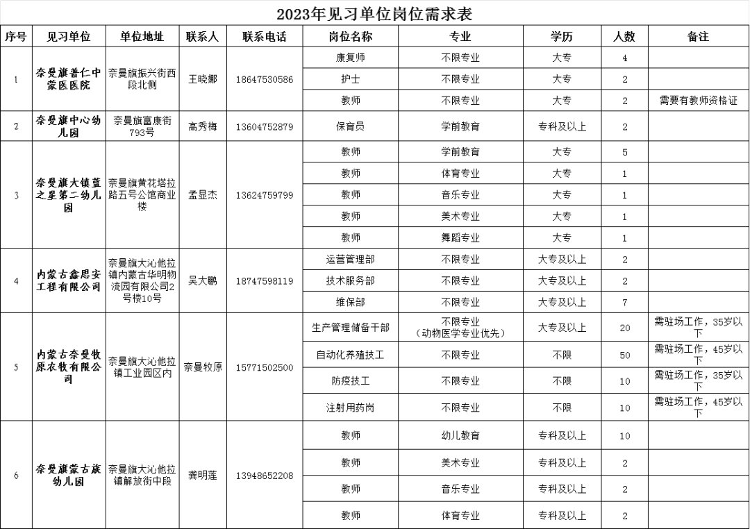 附件1《2023年見習(xí)單位崗位需求表》