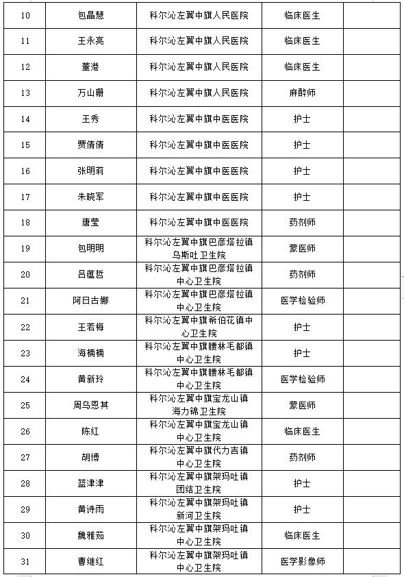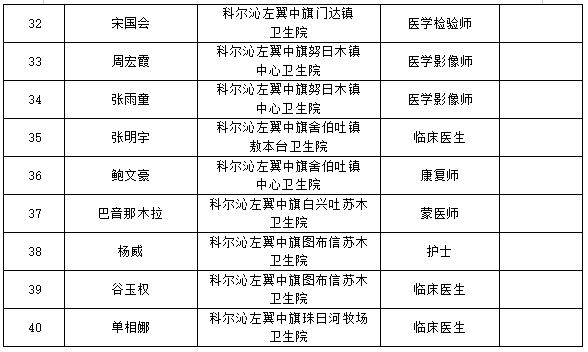 根據(jù)《2024年第一批次科左中旗事業(yè)單位公開招聘工作人員公告》要求,經(jīng)過報(bào)名、資格初審、筆試、資格復(fù)審、面試(試講)、體檢、考察等環(huán)節(jié),現(xiàn)對何斯琴等40名擬聘用人員予以公示。公示時(shí)間為2024年1月15日至1月19日。公示期間如對公示情況有異議,請署名實(shí)事求是反映問題并提供必要的調(diào)查線索及相關(guān)證明材料。