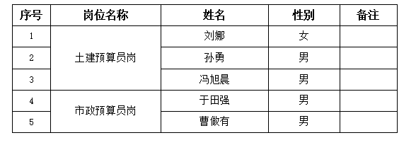 根據(jù)《科爾沁左翼中旗城市發(fā)展投資(集團(tuán))有限公司公開選用勞務(wù)人員簡章》要求,經(jīng)過報(bào)名及資格審查、筆試、體格檢查、政審考察等環(huán)節(jié),現(xiàn)對科爾沁左翼中旗城市發(fā)展投資(集團(tuán))有限公司擬聘用土建預(yù)算員崗、市政預(yù)算員崗的劉娜等5人予以公示。公示時間2024年2月19日至2月26日。公示期間對公示情況有異議,請反映者署名,實(shí)事求是反映問題并提供必要的調(diào)查線索及相關(guān)證明材料。