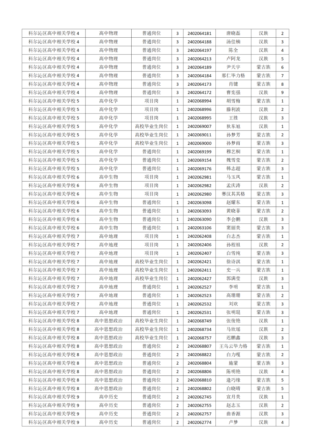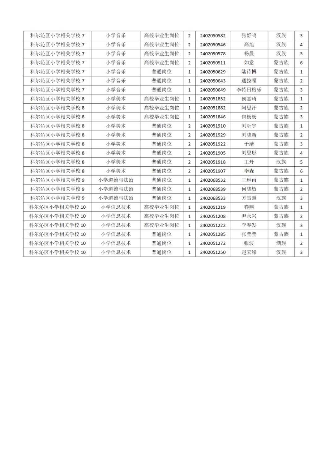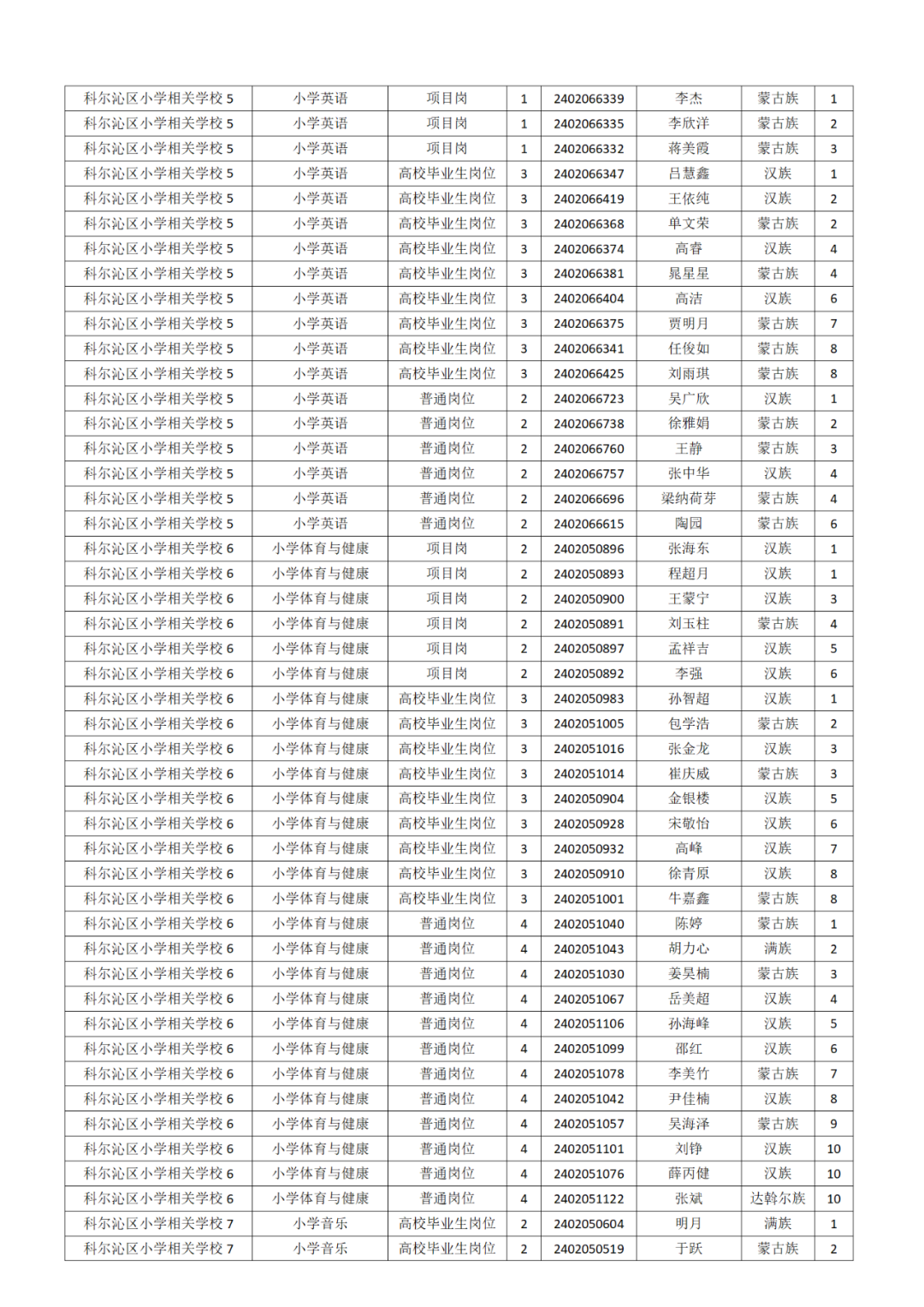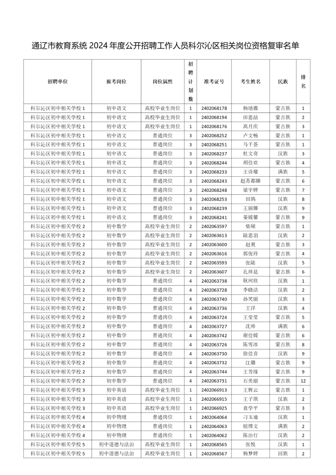 附件:通遼市教育系統(tǒng)2024年度公開招聘工作人員科爾沁區(qū)相關(guān)崗位資格復(fù)審人員名單
